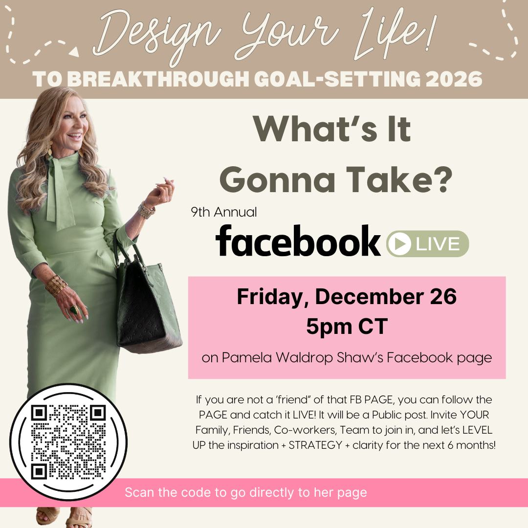Pamela regularly hosts engaging and effective goal setting workshops and other live events where you can learn all about the method behind the Design Your Life 90-Day Planner and BREAKTHROUGH Goal Setting Workbook.